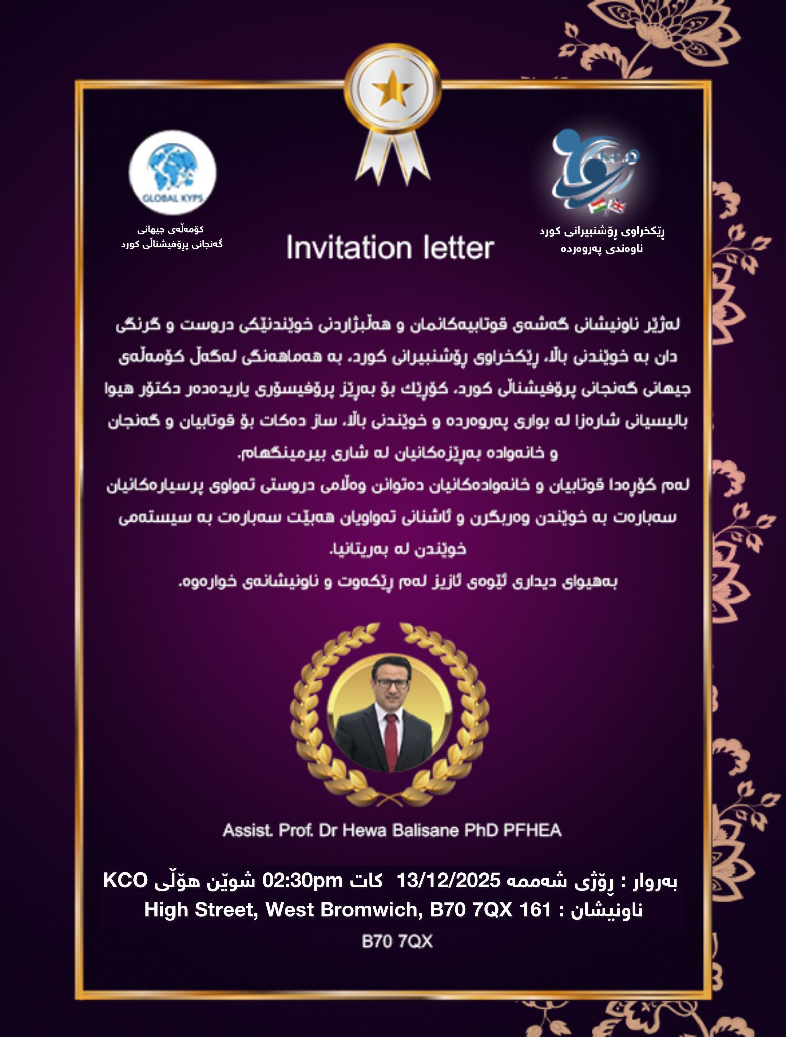 ئاگاداری لە خوێندنگەی ئەیوب ناوەندی پەروەردەیی ڕێکخراوی ڕۆشنبیرانی کورد بۆ خێزانە بەڕێزەکانی شاری بێرمینگهام و دەوروبەری .