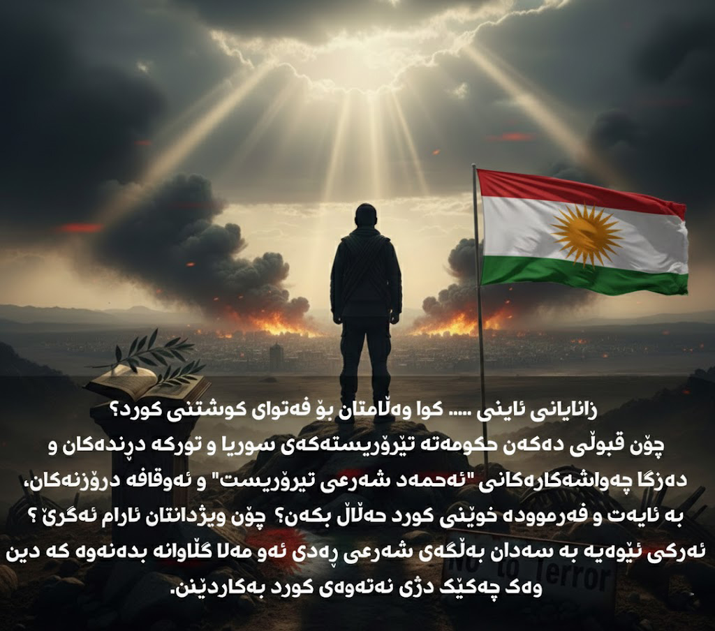 بانگەواز بۆ ئێوەیە، بۆ زانایانی ئاینی کورد: پێش ئەوەی نوێژ بۆ مردووەکانمان بکەن، نوێژ بۆ ویژدانی خۆتان بکەن! چۆن قبوڵی دەکەن حکومەتە تێرۆریستەکەی سوریا و دەزگا چەواشەکارەکانی “ئەحمەد شەرعی تیرۆریست” و ئەوقافە درۆزنەکان، بە ئایەت و فەرموودە خوێنی کورد حەڵاڵ بکەن؟