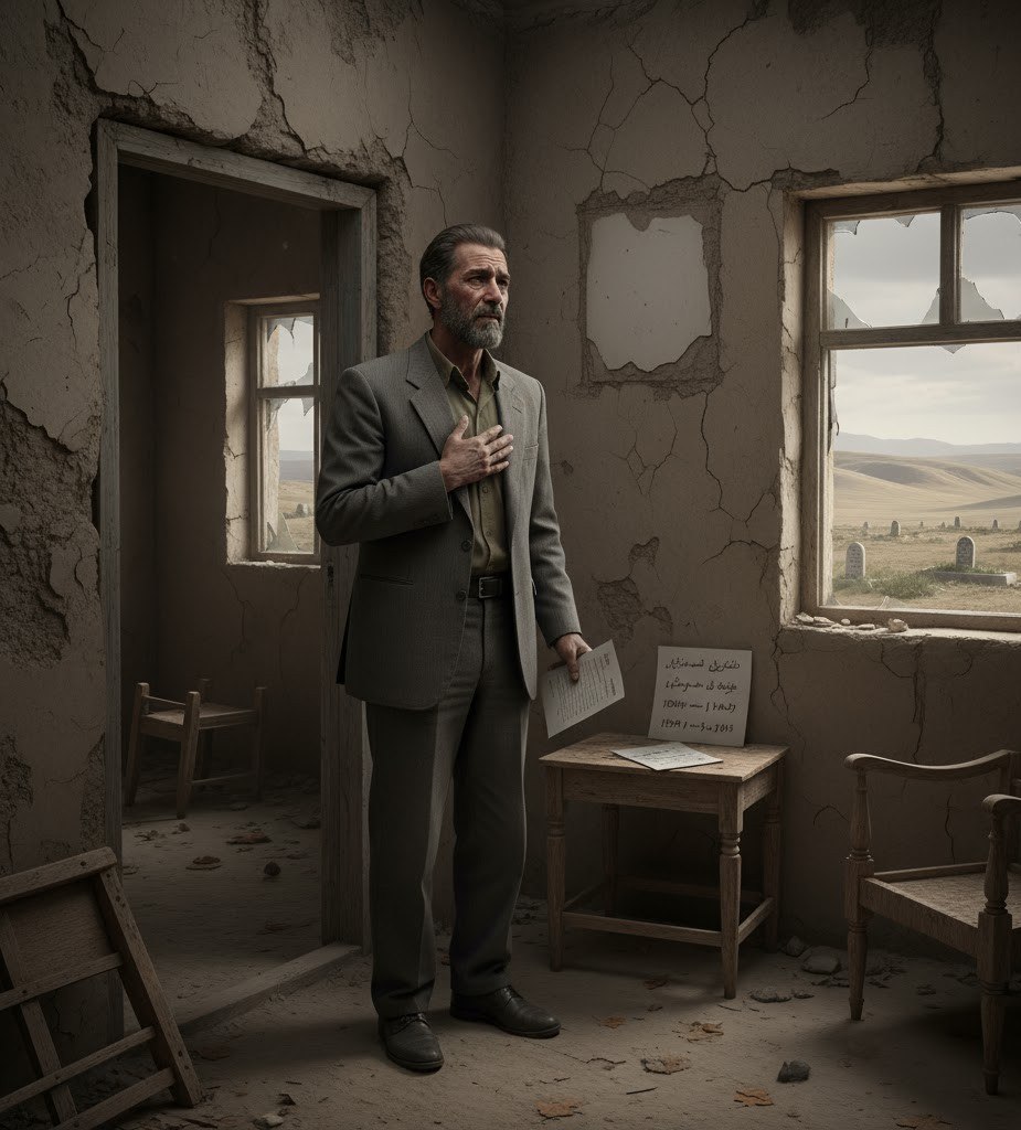 > A soldier fights for the Arabs, sacrifices his life for the leader, and spends his youth in prison for the sake of the president—only to return, stand before the leader’s portrait, pray for him, and learn that his family has been annihilated by that same regime.