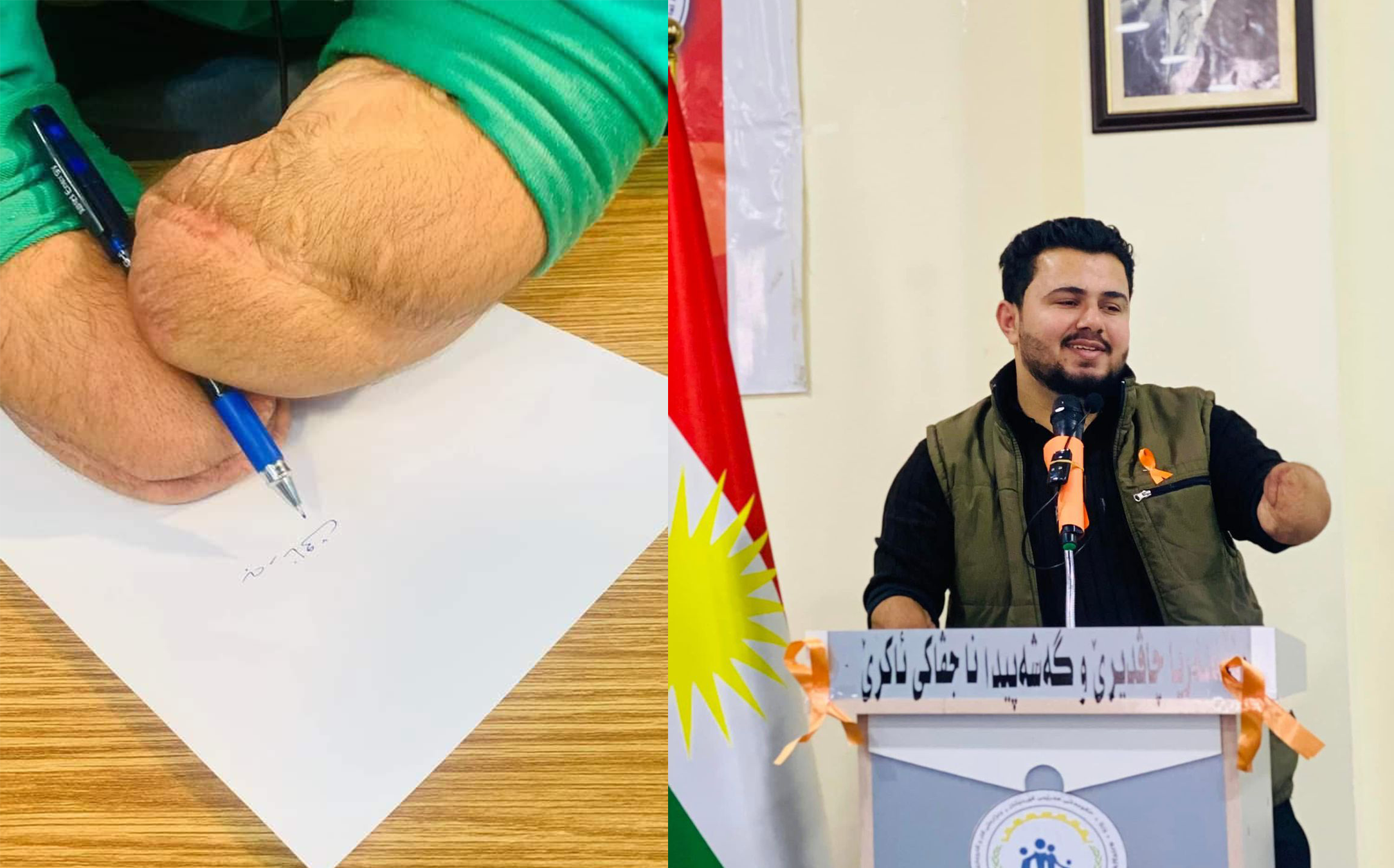 In 2012, in a village within the Akre district, Shahab Ahmed lost both of his hands due to a severe electric shock. Rather than allowing this tragedy to define him, it became the catalyst for him to prove that human potential knows no bounds. He is now recognized as the first journalist with special needs to share his success story through the Kurdish Intellectuals Organization in the UK.